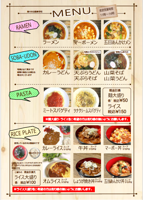 学校食堂メニュー