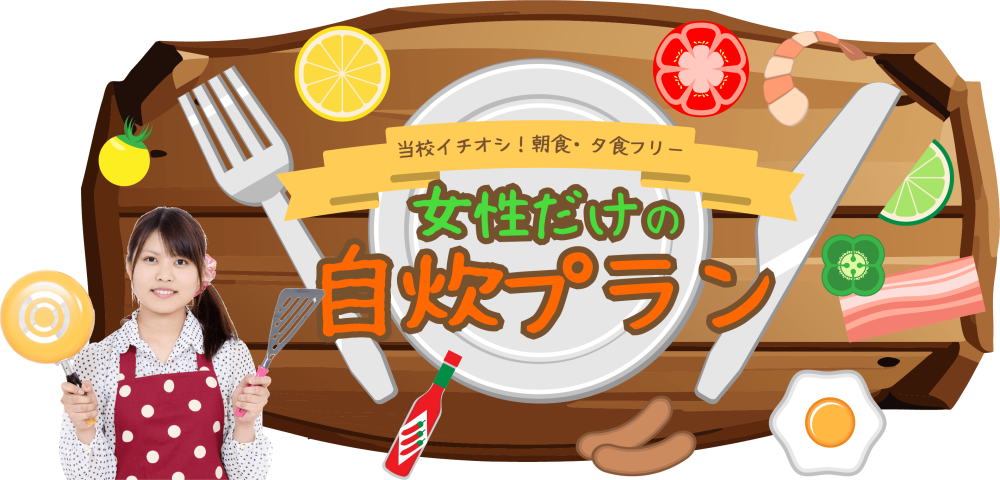 | 自炊 | 学校内食堂メニューから1品お選びいただけます ※混雑時期(2、3、8、9月頃)はお弁当になる場合があります |